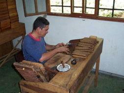陈化后的烟叶就可以开始卷制了。卷制雪茄是一项技术活,需要熟练的手艺。卷制过程中,烟叶要经过精确的切割、拼接和卷曲,确保雪茄的形状和结构完美。